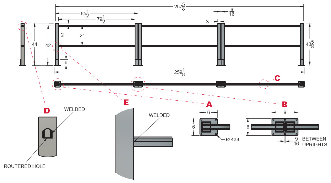 | Posts | 2″ x 2″ x .090/.170 Wall |